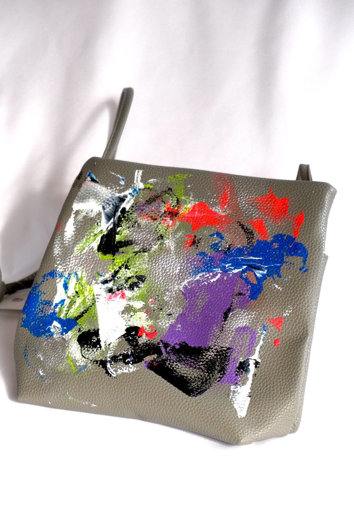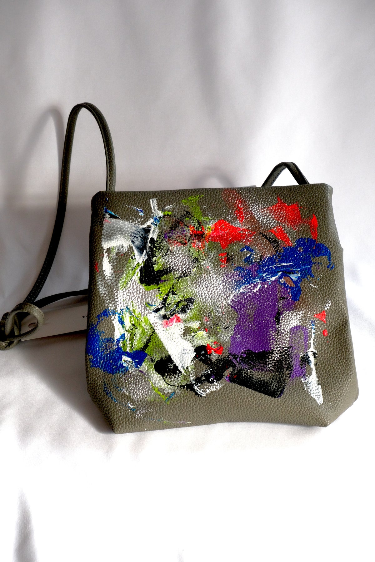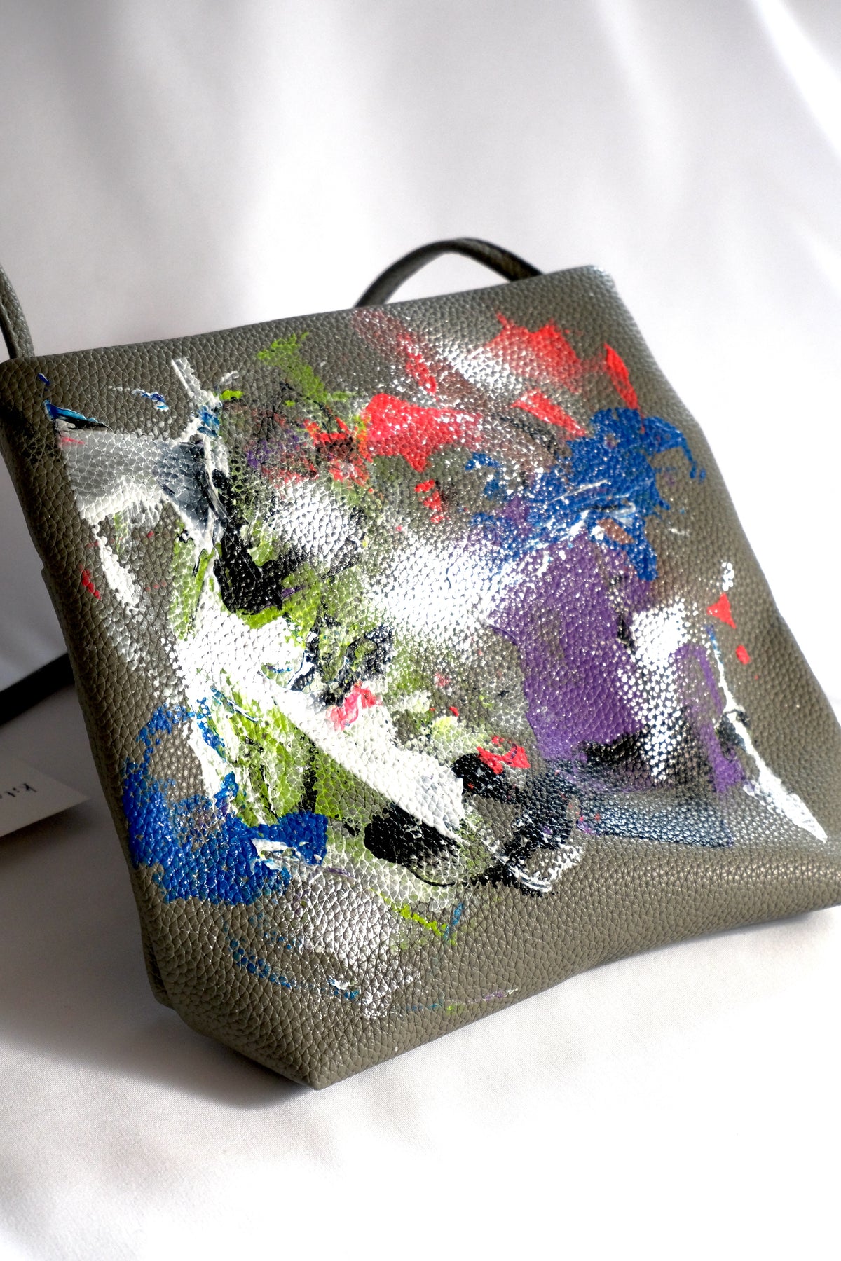 合皮バッグに一点ずつペイントを施した、